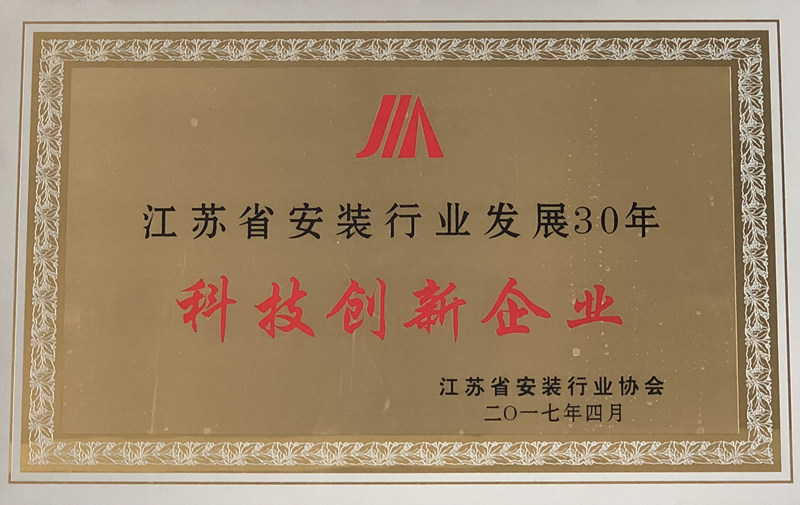 江蘇省安裝行業(yè)發(fā)展30年科技創(chuàng)新企業(yè)
