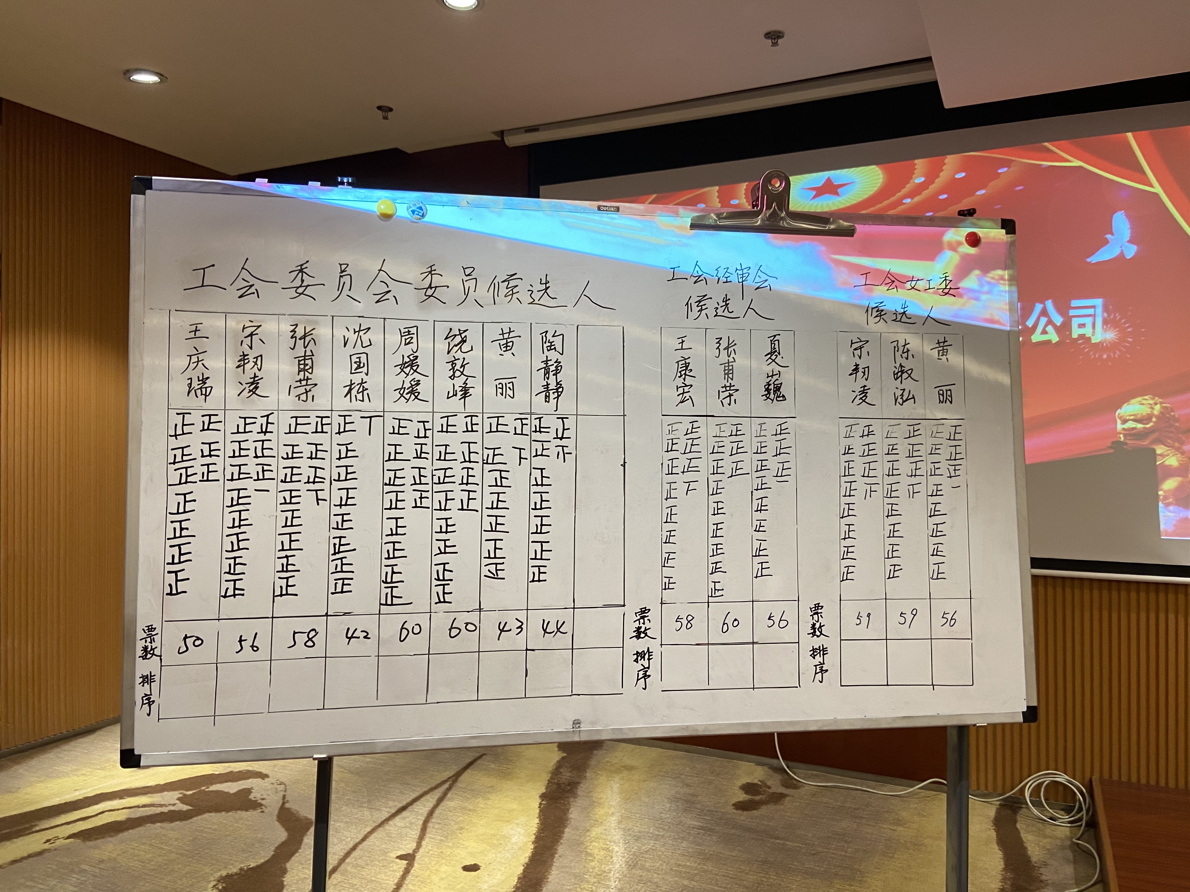 在第二會場,由公司黨委副書記趙成顯同志主持召開了“三委會”的選舉會議。會議以無計名投票的方式選舉饒敦峰同志當(dāng)選工會主席,周媛媛同志當(dāng)選工會副主席,張甫榮同志當(dāng)選經(jīng)費審查委員會主任,宋韌凌同志當(dāng)選女工委員會主任。