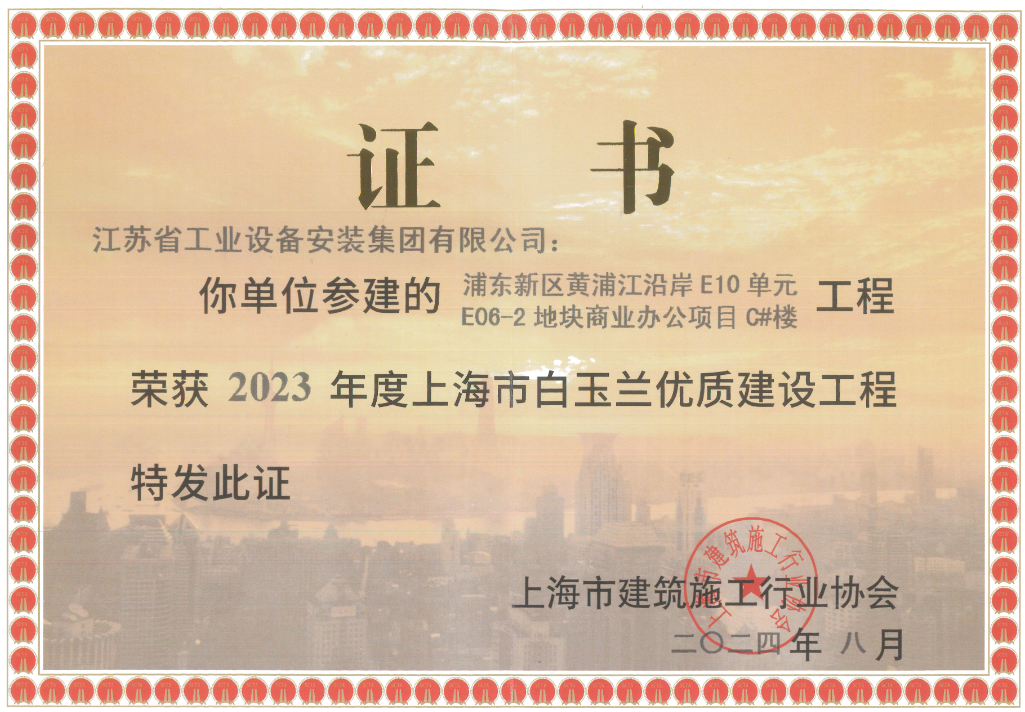 日前,上海市建筑施工行業(yè)協(xié)會傳來喜訊,由我司上海分公司承建的浦東新區(qū)黃浦江沿岸E10單元E06-2地塊商業(yè)辦公項目C#樓榮膺“2023年度上海市白玉蘭優(yōu)質(zhì)建設工程”。這一榮譽是對我司在建筑工程領域?qū)I(yè)能力與卓越品質(zhì)的高度認可。