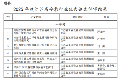 近日,江蘇省安裝行業(yè)協(xié)會(huì)公布了2025年度優(yōu)秀論文評(píng)選結(jié)果,公司報(bào)送的論文憑借扎實(shí)的實(shí)踐基礎(chǔ)和顯著的實(shí)用價(jià)值,在評(píng)選中表現(xiàn)突出,共29篇論文獲獎(jiǎng),其中一等獎(jiǎng)7篇、二等獎(jiǎng)8篇、三等獎(jiǎng)14篇。